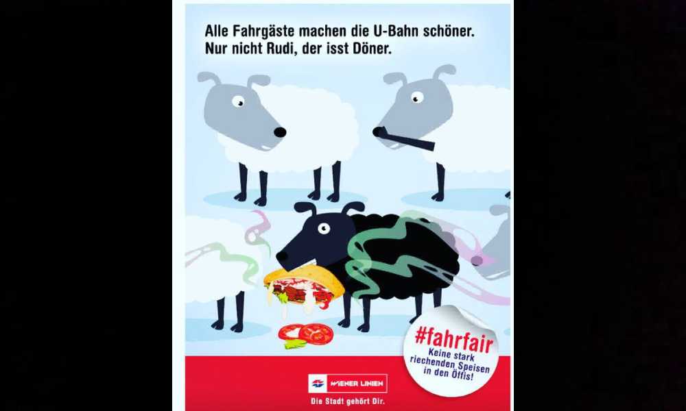 Viyana Metrosu’nun toplu taşıma kullanıcılarını yolculuk esnasında daha duyarlı davranmaya çağıran #fahrfair kampanyasının tartışma yaratan en son afişinde yolcular toplu taşıma araçlarında keskin kokulu yiyecek tüketmeme ve yüksek sesle müzik dinlememe konusunda uyarılıyor. Fakat kampanyanın afişinde kullanılan görsel içerik pek çok kişi tarafından ırkçı ve ayrıştırıcı bulunarak eleştiri yağmuruna tutuldu. Viyana Belediyesi Meclis Üyesi Ulli Sima (SPÖ)’nın tanıtım amacıyla kişisel Facebook hesabından paylaştığı reklam afişinin altına görseli ırkçı ve ayrımcı bulan pek çok kişi tarafından “ucuz popülizm”, FPÖ tarzı reklam” ve “tam bir fiyasko” yorumları yapıldı.