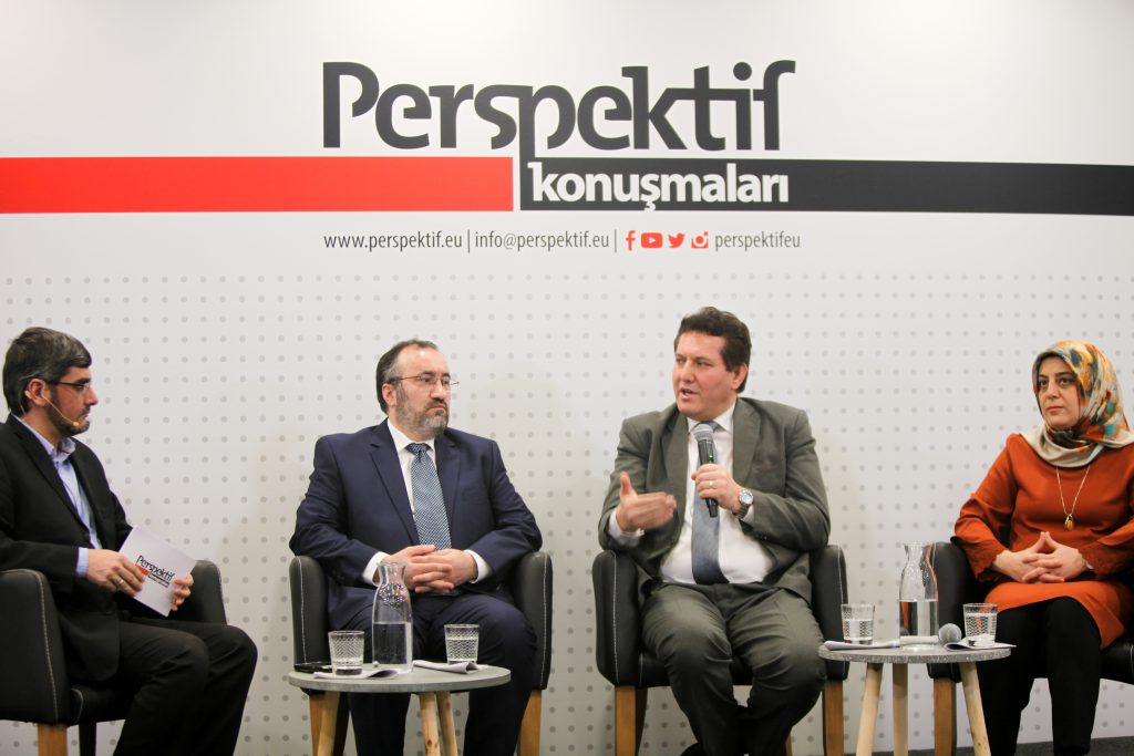 18 Ocak’ta gerçekleşen Perspektif Konuşmaları’nın dördüncü programına “Dinî Cemaatlerin Perspektifinden Almanya’da İmam Eğitimi“ meselesini konuşmak ve tartışmak üzere ülkedeki üç büyük İslami cemaatin temsilcileri katıldı. Almanya İslam Konseyi’ni temsilen konsey başkanı Burhan Kesici, Diyanet İşleri Türk İslam Birliği’ni temsilen Dış İlişkiler Müdürü Zekeriya Altuğ ve Müslüman Merkez Konseyi’ni temsilen konseyin başkan yardımcısı Nurhan Soykan konuşmada misafir olarak yer aldılar. Programda ideal imam modelinden imamların temel görev alanlarına, imam eğitiminden imamların finansmanına, kullanılacak dil sorunundan imamların eğitimi ve finansmanı konularında devletin ve dinî cemaatlerin istekleri ve çekinceleri gibi birçok konuya değinildi.