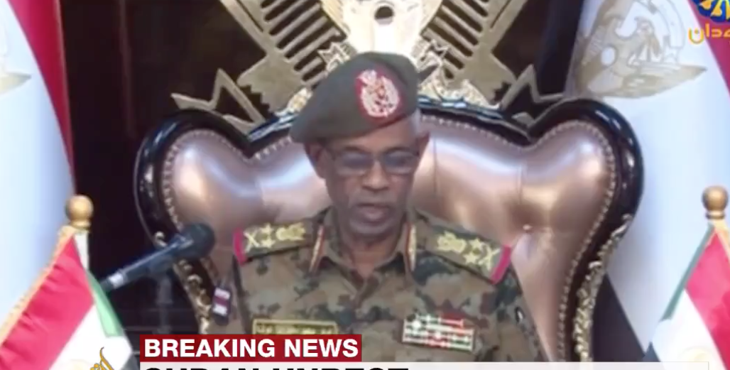 Sudan Savunma Bakanı Awad Muhammed Ahmed Ibn Auf, Yüksek Askeri Konseyin yönetime el koyduğunu açıkladı. Savunma Bakanı, Cumhurbaşkanı Ömer el-Beşir’in tutuklandığını ve güvenli bir yerde tutulduğunu, 2 yıllık bir geçiş döneminin başladığını ve üç aylık olağanüstü hal ilan edildiğini açıkladı.