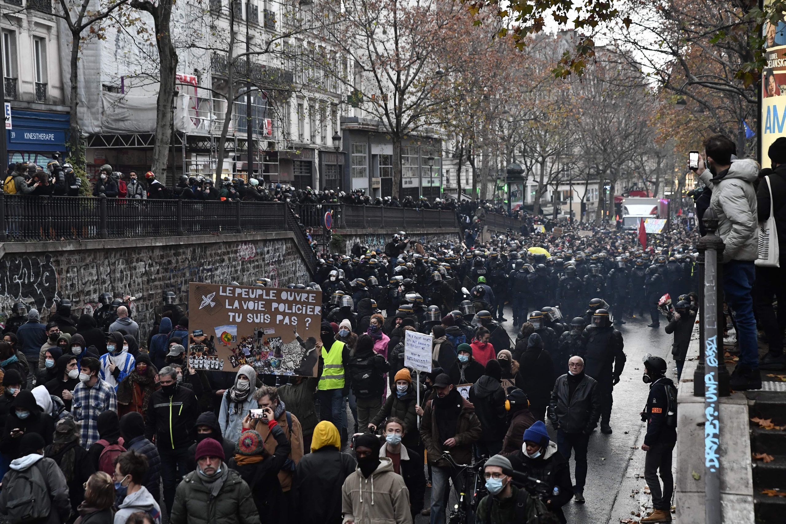 Paris'teki gösteride yoğun güvenlik önlemleri alındı. Fransa genelinde güvenlik yasa tasarısına ve artan İslamofobiye karşı 85 eylem düzenlendi. Lyon kentinde güvenlik yasa tasarısına karşı düzenlenen gösteride polis, çeşitli maddeler atan eylemcilere karşı biber gazı kullandı.
