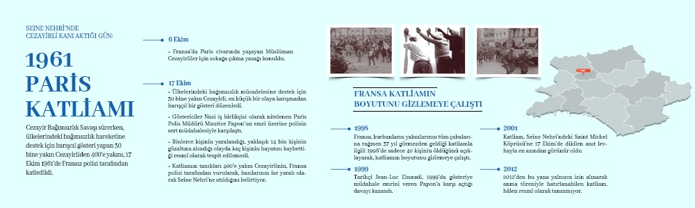 UNC’ye göre, “17 Ekim 1961 Paris gösterisi, her şeyden önce Cezayir Ulusal Kurtuluş Cephesi’nin (FLN) Fransa’daki gücünü göstermek için düzenlenen devrimci bir gösteriydi.” UNC ayrıca, Cezayir milliyetçiliğinin siyasi lideri Ali Boumendjel’in Cezayir Savaşı sırasında öldürülmesinin kabulünün, “bu savaşta öldürülen bazı teröristlerle ilgili başka taleplere de yol açabileceğini” belirtiyor.
