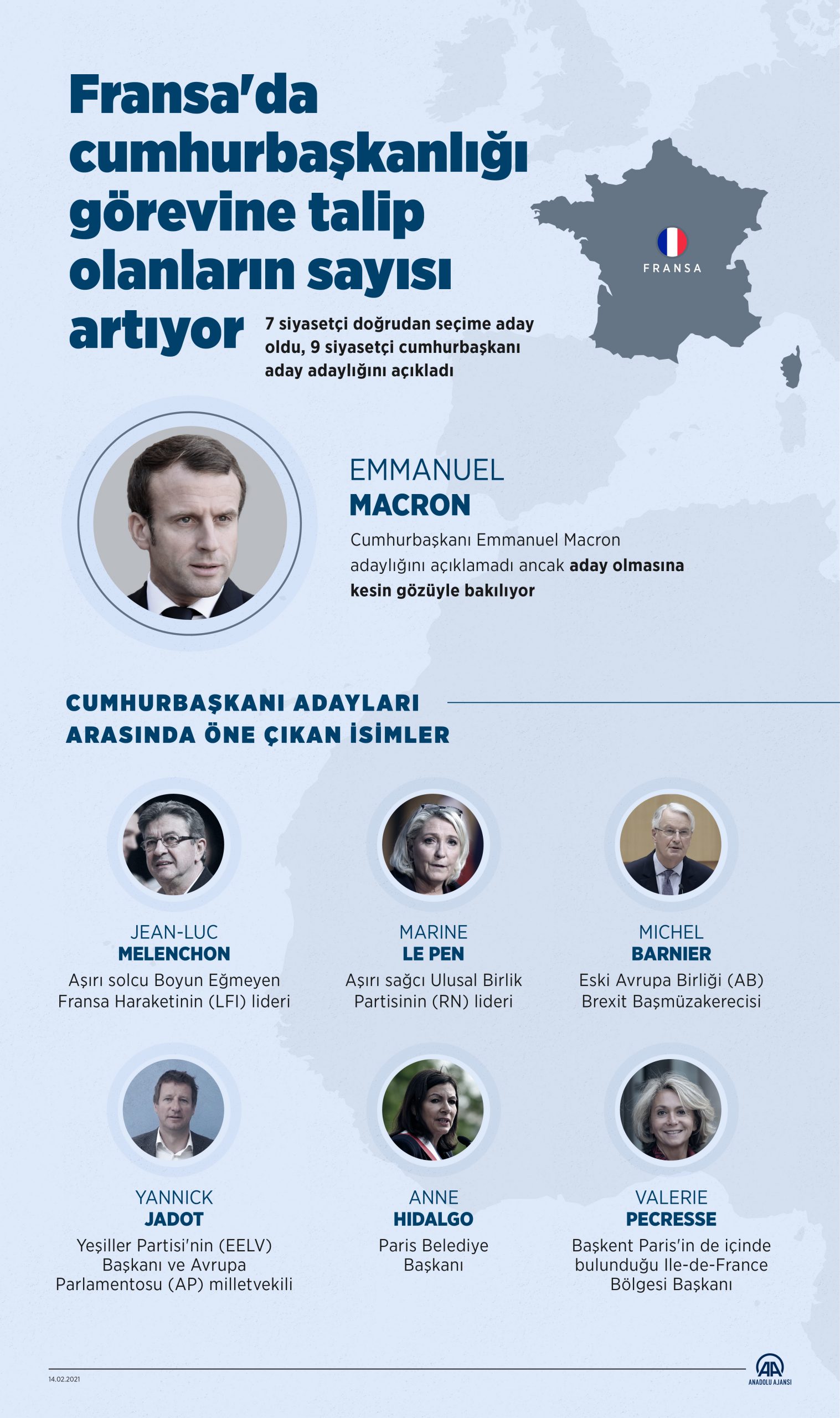 Fransa'da gelecek yıl düzenlenecek cumhurbaşkanı seçimi için adaylığını açıklayanların sayısı artıyor. Cumhurbaşkanı Emmanuel Macron adaylığını açıklamadı ancak aday olmasına kesin gözüyle bakılıyor.