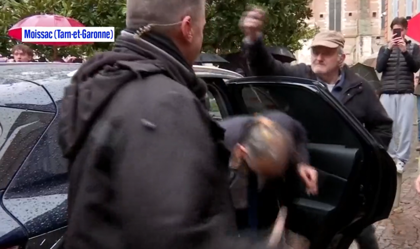 Fransa'da cumhurbaşkanı adayı aşırı sağcı Eric Zemmour, Moissac kentine yaptığı ziyarette yumurtalı saldırıya uğradı.